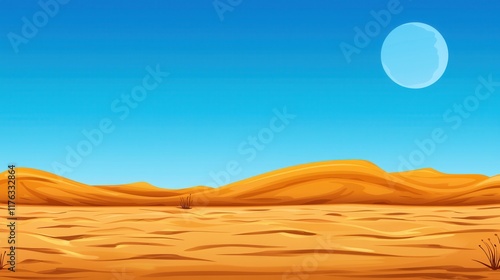 Fototapeta premium Expansive Desert Landscape under Serene Blue Sky and Shimmering Moon