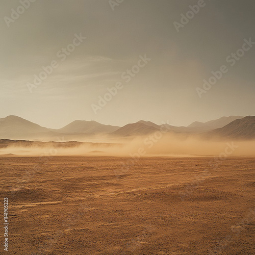 © tanawatbig, Fototapeta premium Expansive Desert Landscape with Soft Sand Dunes Under Clear Sky at Dusk, Capturing the Tranquility and Natural Beauty of Arid Environments