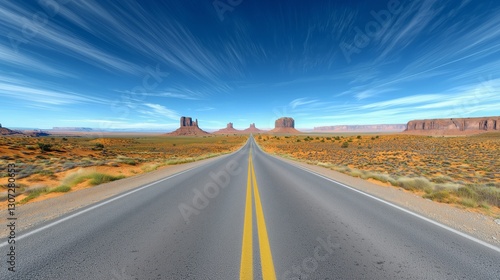 Fototapeta premium Expansive Desert Road Leading to Monument Valley