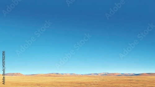 © Alexander, Fototapeta premium Expansive dryland landscape with blue sky stretches to distant hills