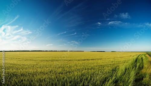 © AustinSANC, Fototapeta premium Expansive Field Under Clear Blue Sky