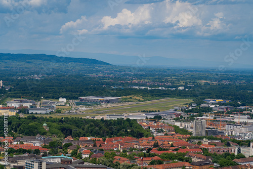 © Mustafa, Obraz premium Expansive Freiburg Cityscape Under a Cloud-Dotted Sky
