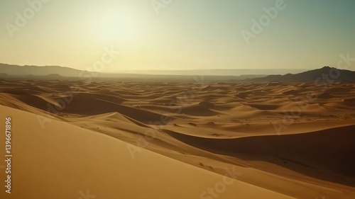 Fototapeta premium Expansive Golden Sand Desert Landscape with Soft Lighting and Undulating...