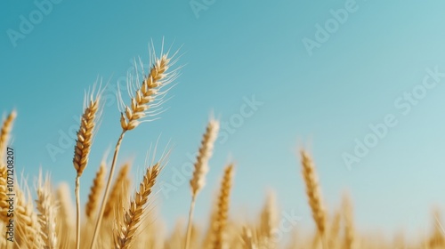 Fototapeta premium Expansive golden wheat field under a clear blue sky