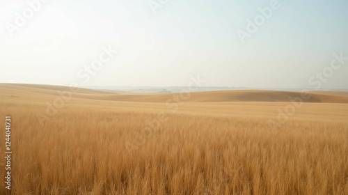 © Kitta Studio, Obraz premium Expansive Golden Wheat Field Under Soft Blue Sky in Rural Landscape