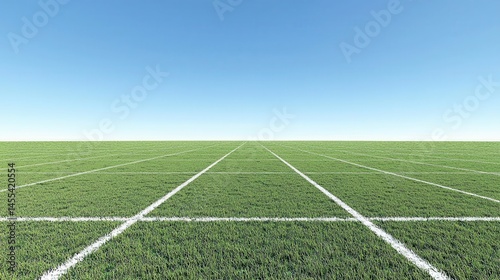 Fototapeta premium Expansive Green Field with White Lines Under Blue Sky
