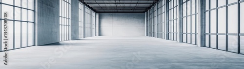 Fototapeta premium Expansive Industrial Warehouse Interior Bathed in Natural Light from Large...