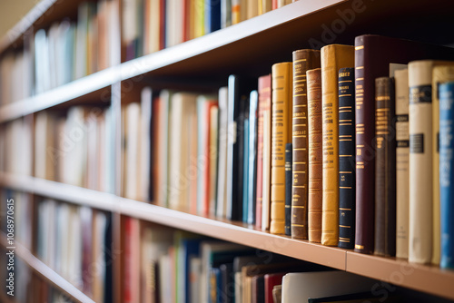 © evening_tao, Fototapeta premium Expansive Library Bookshelf Brimming with Knowledge