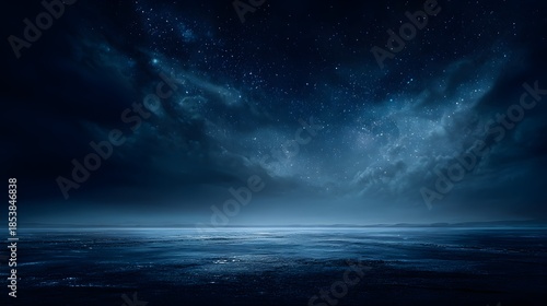 © sLOw, Fototapeta premium Expansive Obsidian Plains Reflecting a Starry Night Sky with Cosmic Nebula