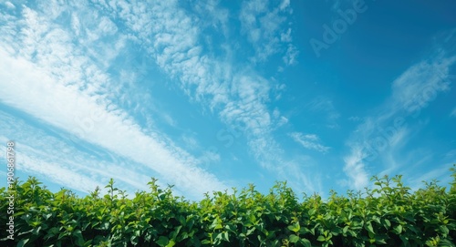 © vxnaghiyev, Obraz premium Expansive sky with scattered clouds surrounded by thick leafy growth