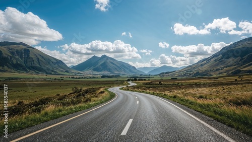 © AIArtistry, Naklejka premium Expansive view of a picturesque roadway winding through green terrain.