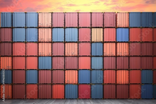 © PerfectPix, Obraz premium Expansive view of colossal shipping containers forming a labyrinthine wall