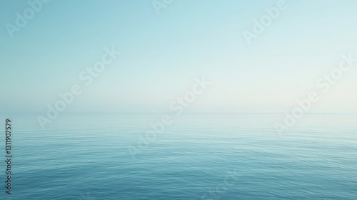 © Khaisan, Obraz premium Expansive vista of a tranquil sea merging seamlessly with a soft gradient sky