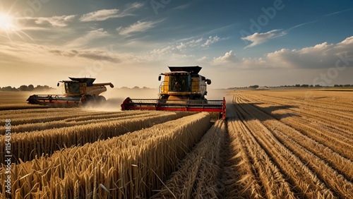 © Imranstudio , Fototapeta premium *Expansive Wheat Field at Harvest Time:**3D style Digital Artwork series 04