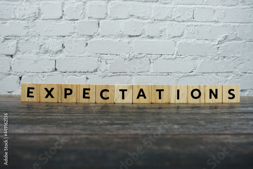 © may1985, Fototapeta premium Expectations word alphabet letters on wooden background