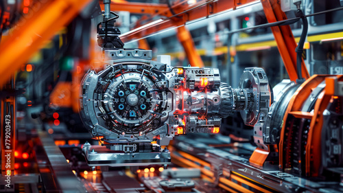 Fototapeta premium Experience automotive innovation featuring electric motor assembly on a production line, mobility in action, powered by precision engineering