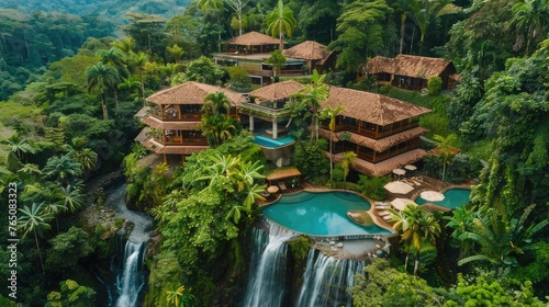 Naklejka premium Experience Costa Rica's natural wonders. Our images showcase lush rainforests and cascading waterfalls, with eco-lodges offering sustainable accommodations amidst emerald greenery.