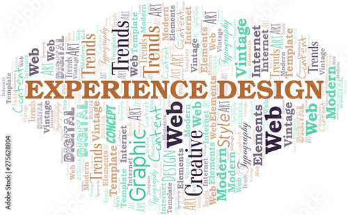 © sharafmaksumov, Obraz premium Experience Design word cloud. Wordcloud made with text only.