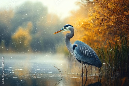 © BHZshop, Fototapeta premium Experience peaceful beauty of a marsh as a graceful blue heron exudes