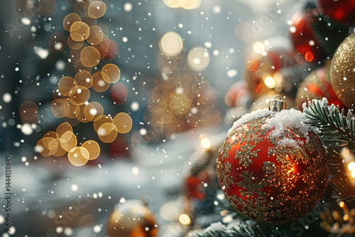 Fototapeta premium Experience the magical transformation of holiday festivities as the gentle touch of snow creates an enchanting and everlasting essence, making this Christmas a truly majestic and wondrous affair