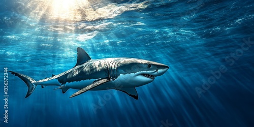 Naklejka premium Experience the majesty of the great white shark in its natural deep ocean...