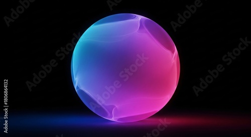 © One Studio Art, Obraz premium Experience the mesmerizing glow of a luminous orb against a dark backdrop, radiating vibrant hues of blue, purple, and pink, perfect for modern tech and abstract designs