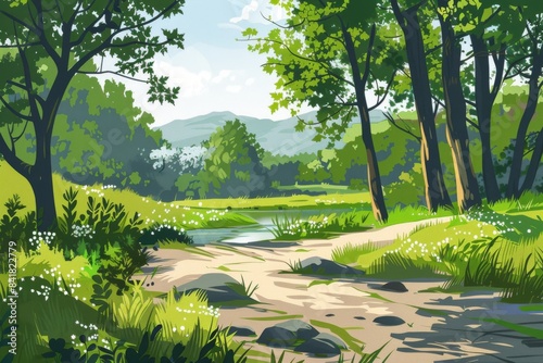 Naklejka premium Experience the serenity of a peaceful nature walk or hike amidst a breathtaking scenic environment.