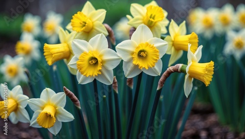 Fototapeta premium Experience the vibrant yellow daffodil bloom in early spring and embrace the...