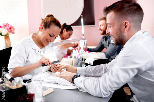 Obraz premium Experienced beauty salon worker handling her customer with a manicure treatment