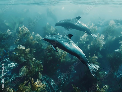 Fototapeta premium Experimental documentary using AI to visualize marine life conservation funded through innovative financial tools