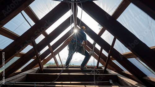 Obraz premium Expert Electrical Installation, Skilled Electrician on a Newly Built Home, Generative AI