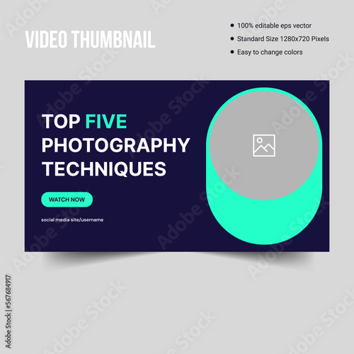 © Asma, Fototapeta premium Expert photography techniques video thumbnail banner template design