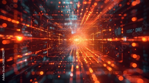 Fototapeta premium Exploded View of an Intelligent Algorithm Visualized in a Captivating Spectrum of Luminous Energy and Geometric Shapes