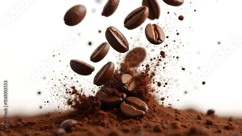 Obraz premium Exploding coffee beans on white background