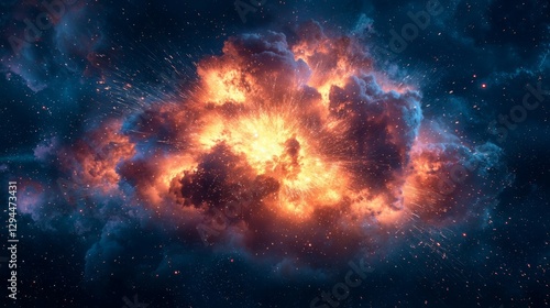 Fototapeta premium Exploding Cosmic Cloud Drenched in Bright Orange and Blue Light