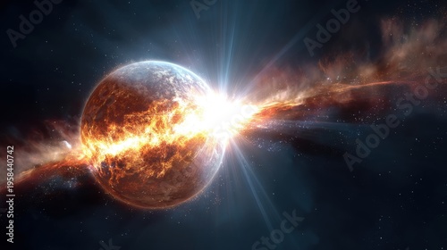 © Aiy JR Stock, Obraz premium Exploding Fiery Planet in Deep Space