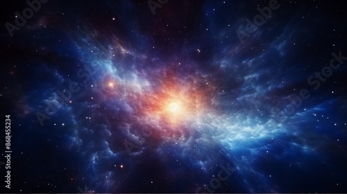 Fototapeta premium Exploding star. Universe expanding, nebulae stardust. Supernova background...