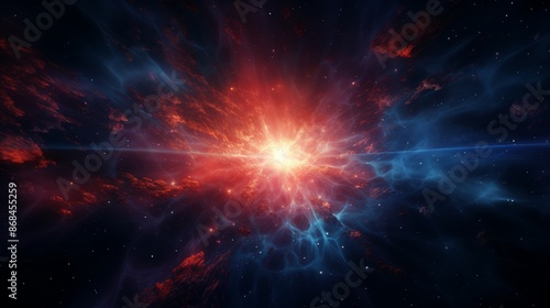 Fototapeta premium Exploding star. Universe expanding, nebulae stardust. Supernova background...