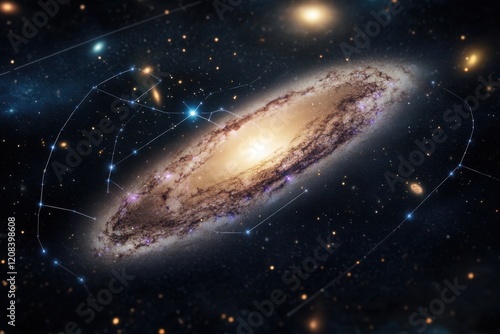 Naklejka premium Exploration of a distant galaxy with vibrant stars and intricate cosmic...