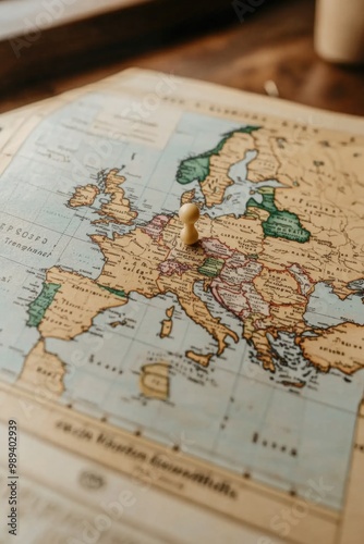 Fototapeta premium Exploration of europe: pushpin on vintage map highlighting travel adventures