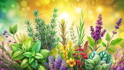 Fototapeta premium Explore a delightful assortment of colorful hand-drawn herb sketches, tailored for botanical lovers who appreciate artistic interpretations of