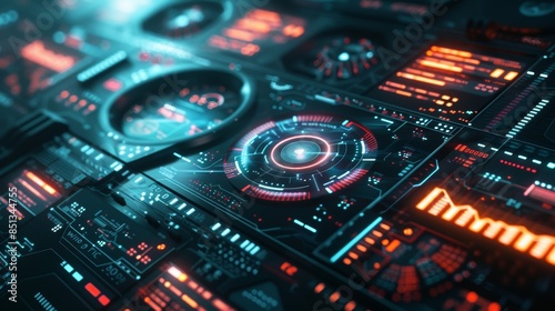 Obraz premium Explore a dynamic and vibrant digital interface with a glowing effect This...