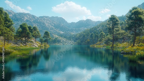 Fototapeta premium Explore a serene lake surrounded by majestic mountains