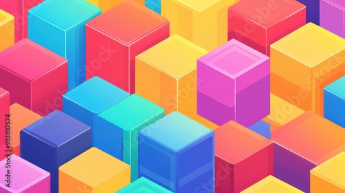 Naklejka premium Explore a vibrant graphic design featuring abstract geometric blocks, showcasing the dynamic world of blockchain technology.