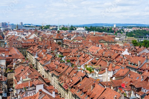 Fototapeta premium Explore Bern, Switzerland, a captivating city known for its medieval architecture, picturesque cobblestone streets, and stunning views along the Aare River, blending history and culture.