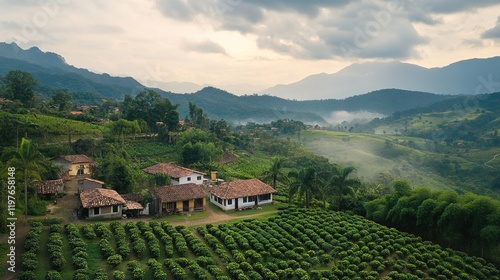 Fototapeta premium Explore coffee bean origins, unique flavors, rich aroma, lush farms,...