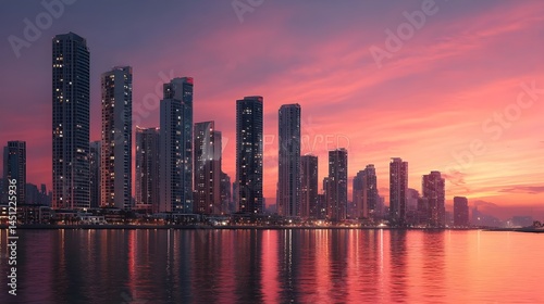 © Sekai, Fototapeta premium Explore Elegant 3D Luxury Apartment Overlooking Vibrant City Skyline At Sunset With Exclusive High-End Amenities