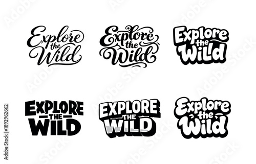 © Valentyna, Fototapeta premium Explore Lettering Grid. Explore the Wild. Set lettering. harmonious lettering variations of the same emblematic concept, each with different artistic