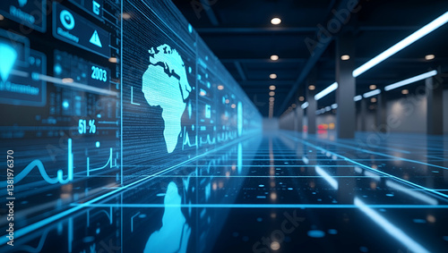 © GG Kenji, Naklejka premium Explore our premium photo stock featuring AI-powered surveillance designs, showcasing intelligent monitoring systems in expansive empty spaces.