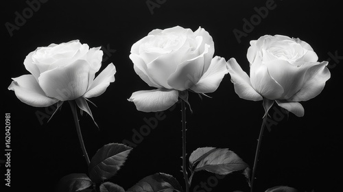 © Bayram, Naklejka premium Explore the art of minimalist photography, featuring roses loosing its petals in front of a plain black background without any shadows, black-white image